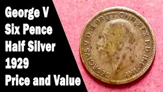 - George V, Six Pence, Half Silver, 1929, UK, Price and Value
