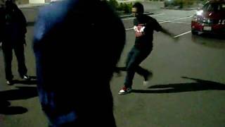 after a long day working at the commissary, bagging and cashiering. me and blair jerking around the parking lot while trying to teach titus how to jerk xD.