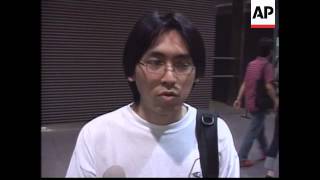 Ginza, Tokyo - 1 June 2002 1. Wide shot FIFA ticket office 2. FIFA ticketing sign 3. Pan of people walking into office 4. Zoom back from people at counter 5.