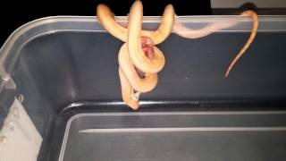 Feed time for this young Albino Darwin Python.