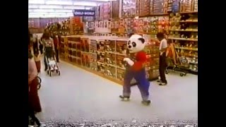 There\'s a crazy panda on roller skates in this 1980 television commercial for Child World Toy Stores.
