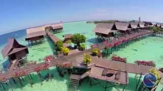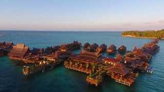 Aerial view and underwater video of Mabul Water Bungalow Resort in Malaysia.